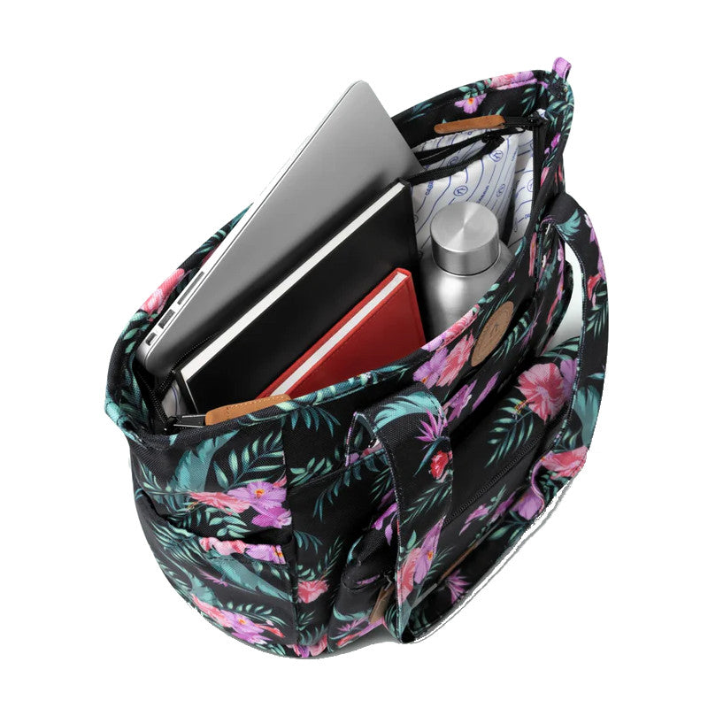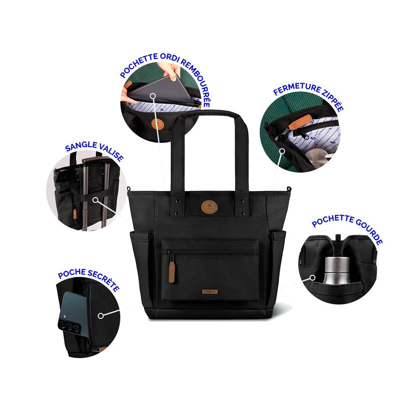 Le sac cabas allie élégance et efficacité pour vous accompagner au quotidien avec style. Léger mais spacieux, il accueille jusqu’à un ordinateur 12‑14 pouces dans un compartiment spécialement rembourré tout en préservant une silhouette sobre. Ses deux poches élastiques latérales sont conçues pour accueillir une gourde ou un parapluie, toujours à portée de main. Grâce au système MOLLE, vous pouvez fixer des pochettes à l’avant pour personnaliser votre organisation. Pour les déplacements, une sangle permet d’attacher facilement le tote à une valise, idéal quand vous voyagez léger. Vegan et déperlant, il conjugue respect des valeurs durables et protection contre les intempéries, pour une utilité maximale sans compromis esthétique.